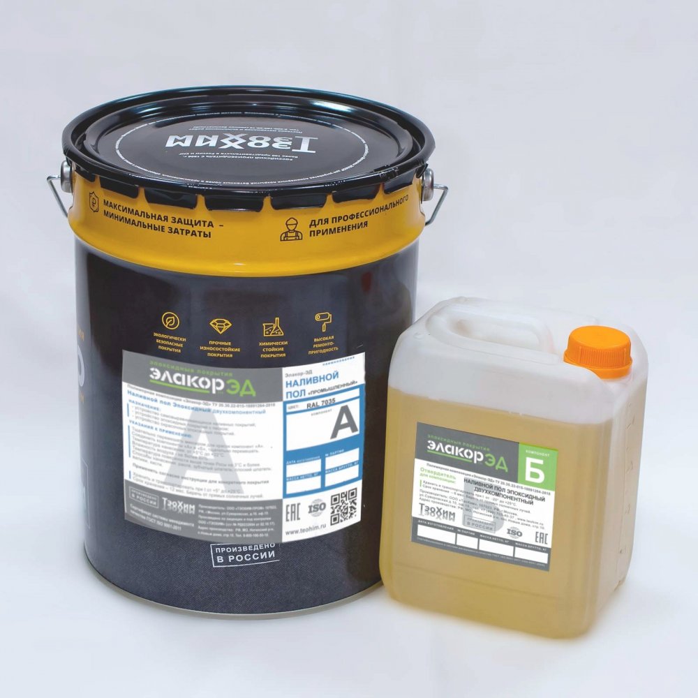 Элакор-ЭД Наливной пол Промышленный - эпоксидный самовыравнивающийся двухкомпонентный состав для устройства наливных и кварцнаполненных покрытий полов в помещениях со средними и высокими нагрузками и фактурных окрасочных покрытий..
